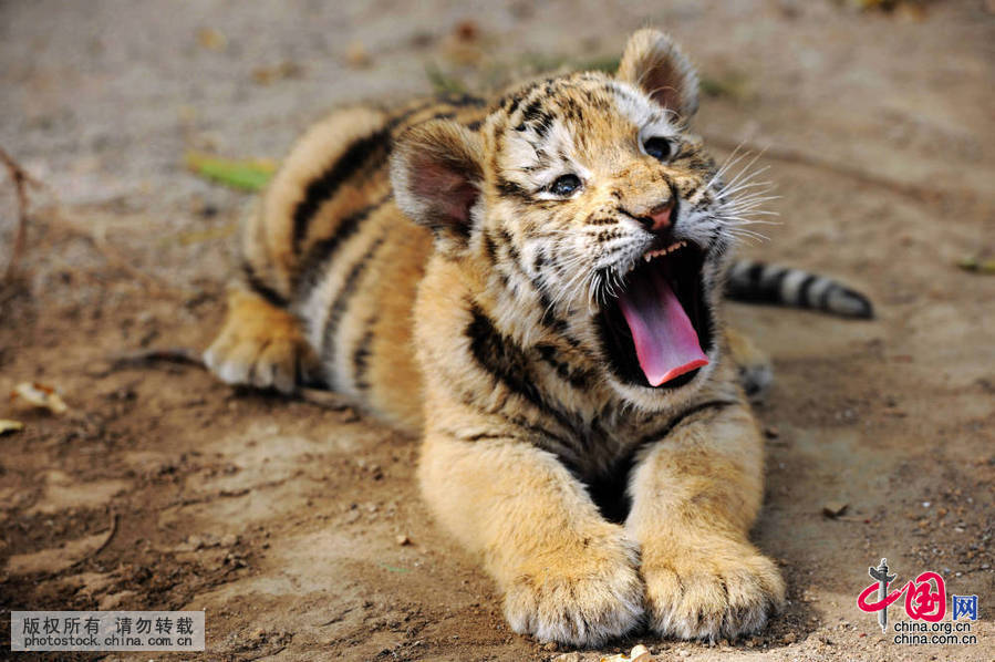 山东青岛森林野生动物世界出生3个月的小狮虎在玩耍(摄影 中国网图片库/俞方平)