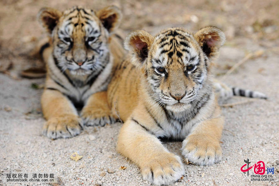 山东青岛森林野生动物世界出生3个月的小狮虎在玩耍(摄影 中国网图片库/俞方平)
