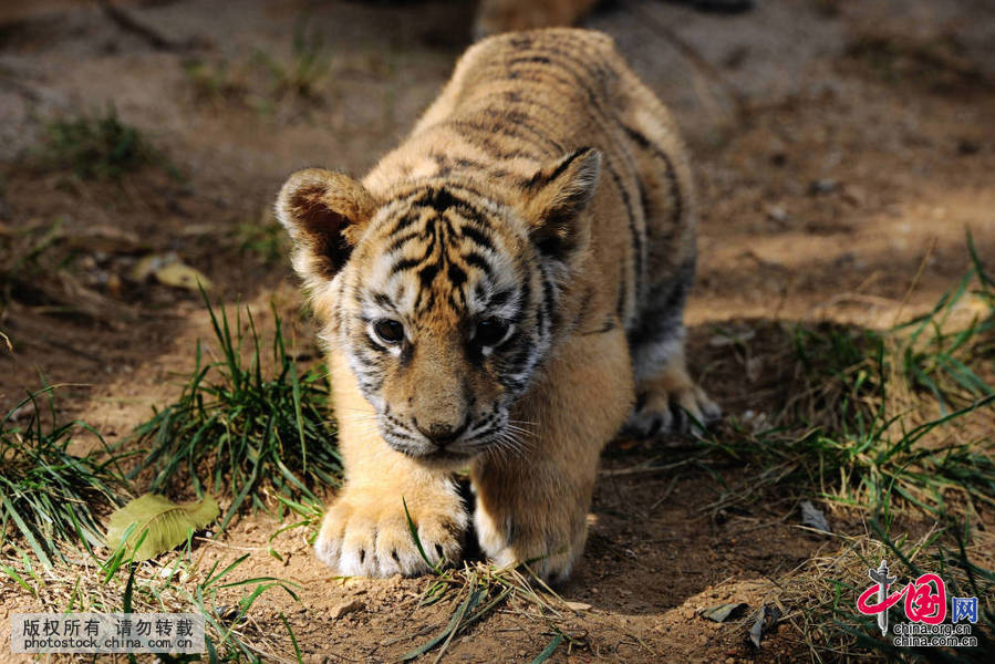 山东青岛森林野生动物世界出生3个月的小狮虎在玩耍(摄影 中国网图片库/俞方平)
