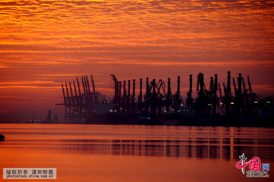 关键词: 晨曦 景色 如画 妖娆 霞光 港口 火烧云