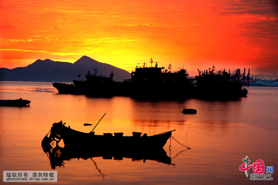 晨曦 景色 如画 妖娆 霞光 港口 火烧云