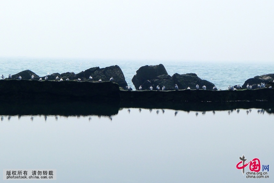 金秋时节的青岛石雀滩,海鸥翔集,景观灵动(摄影 中国网图片库/韩波)