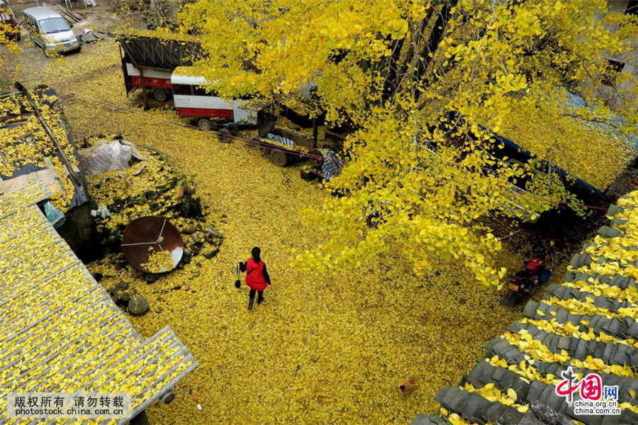 目前,广西兴安县漠川乡已进入观赏银杏叶的最佳时节,满山遍野的银杏林及古朴的村庄院落被银杏落叶铺上了满地的“金色地毯”,让人陶醉其中。