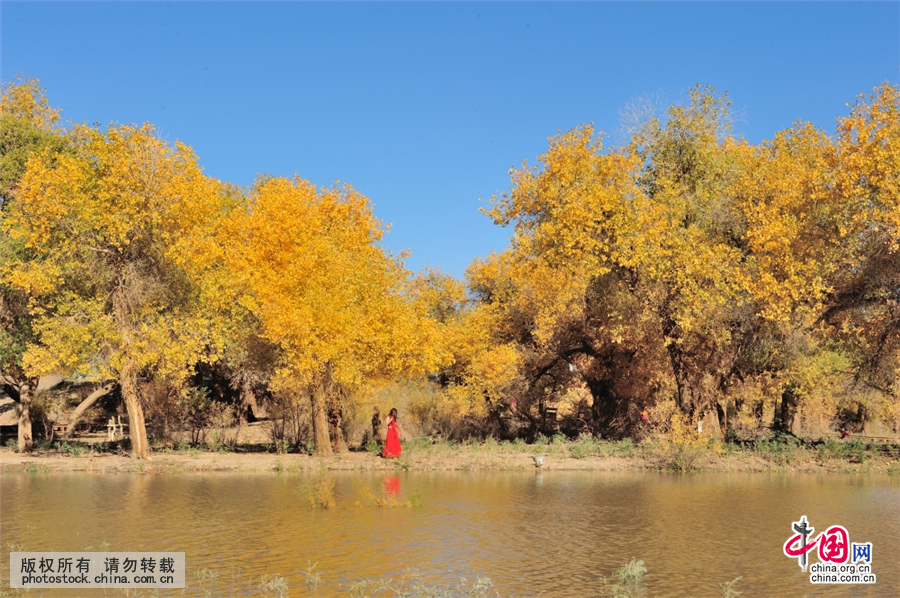 2015年10月4日,内蒙古阿拉善盟,额济纳旗胡杨林国家级自然保护区,绚丽多姿的胡杨林。中国网图片库 何东平/摄