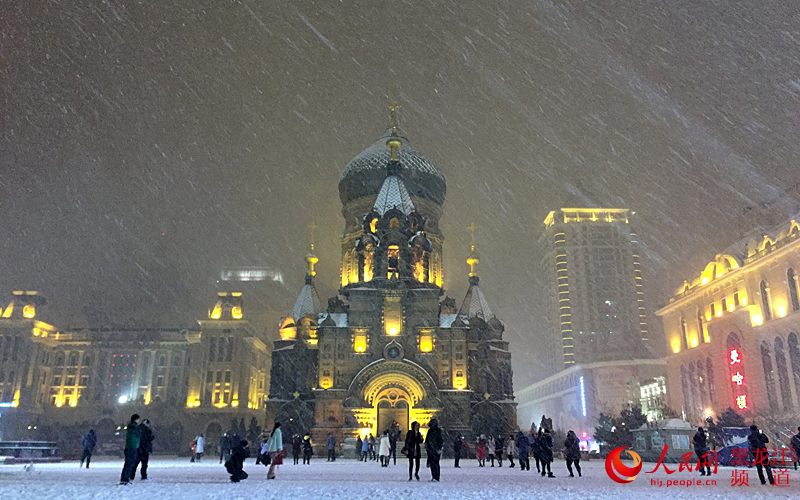 雪中的哈尔滨索菲亚教堂。围城 摄