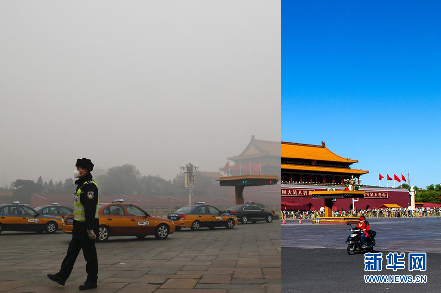 首次重污染红色预警 北京景点前后对比