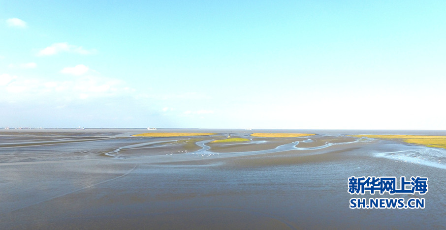 图为九段沙保护区的滩涂地貌航拍,九段沙潮滩沉积物具有明显的沉积分带现象,由高潮滩到中潮滩、低潮滩、潮下滩。
