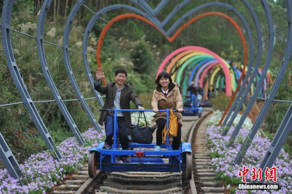 广西废弃铁路披“彩妆” 变身爱情隧道吸引游人