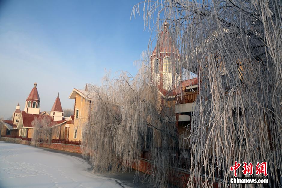1月12日清晨,在新疆伊犁河景区公园赏雪,漫步在2000多米长的滨河景观走廊看风景,这里连接公园内南区景点、设施和水系,游人在上面赏雪,周边的一切冰雕玉琢。伊犁河谷冬季空气中的水蒸气由于温度过低在植株周围直接凝华从而形成了雾凇美景。冬季观赏“雾凇”和雪景,成了人们外出游玩的首选。史恭敬 摄