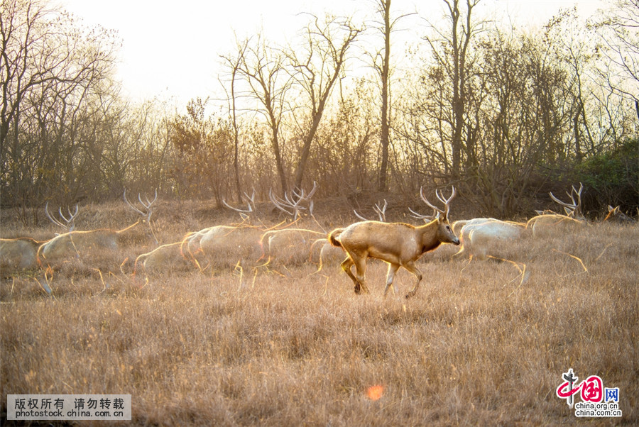 江苏大丰麋鹿国家级自然保护区是世界占地面积最大的麋鹿自然保护区,拥有世界最大的野生麋鹿种群,建立了世界最大的麋鹿基因库。中国网图片库 作者:刘杰