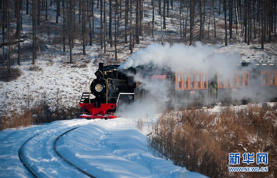这是内蒙古大兴安岭林区莫尔道嘎镇的森林观光小火车(12月21日摄)。新华社记者 连振 摄