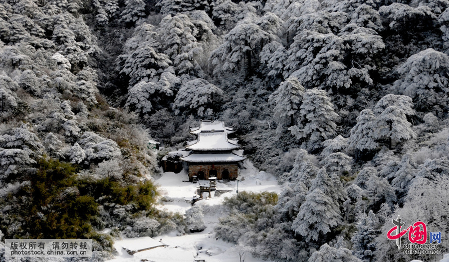 在连日超级寒潮袭击下,江西省三清山风景区遭受强降温降雪,景区银装素裹,玉树琼枝,景色格外唯美壮观。图为2016年1月24日,江西省三清山风景区三清宫雪景。中国网图片库胡敦煌摄影
