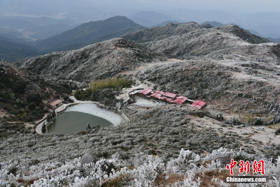 近日,强寒潮来袭,福建省龙岩市武平县、连城县、长汀县等部分山区纷纷下起雪,摄影“发烧友”冒着极度严寒,第一时间用镜头记录那令人炫目而绝美的雪景。图为1月24日,海拔1538.4米的武平第一高峰梁野山之巅的绝美雪景。李国潮 摄