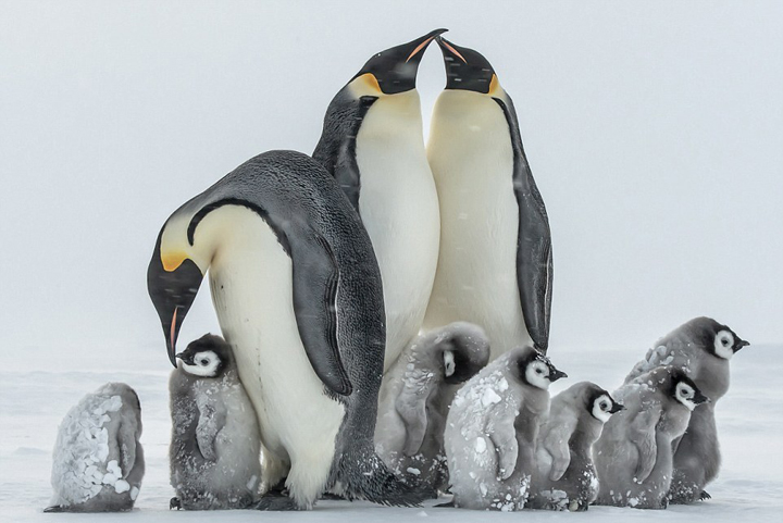 南极帝企鹅宝宝相互依偎抵御暴风雪[组图]