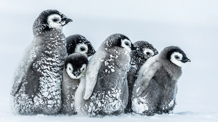 南极帝企鹅宝宝相互依偎抵御暴风雪[组图]