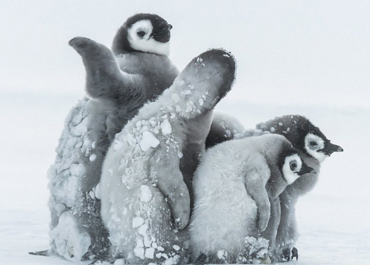 南极帝企鹅宝宝相互依偎抵御暴风雪[组图]