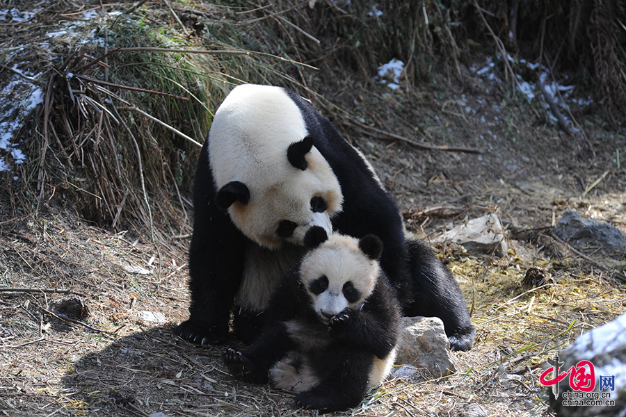 15年出生参加野化培训的新妮儿仔在野化环境中。(图片由中国大熊猫保护研究中心提供)