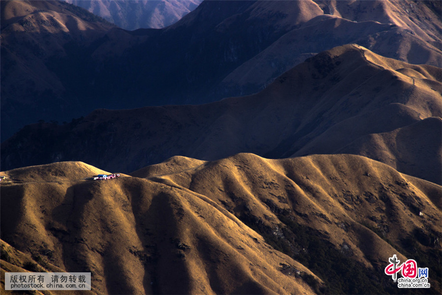 2016年1月17日,江西萍乡武功山景区光影交错,美如桌面壁纸,大面积的高山草甸,宛如壮美辽阔的西北草原。中国网图片库 陈涛/摄