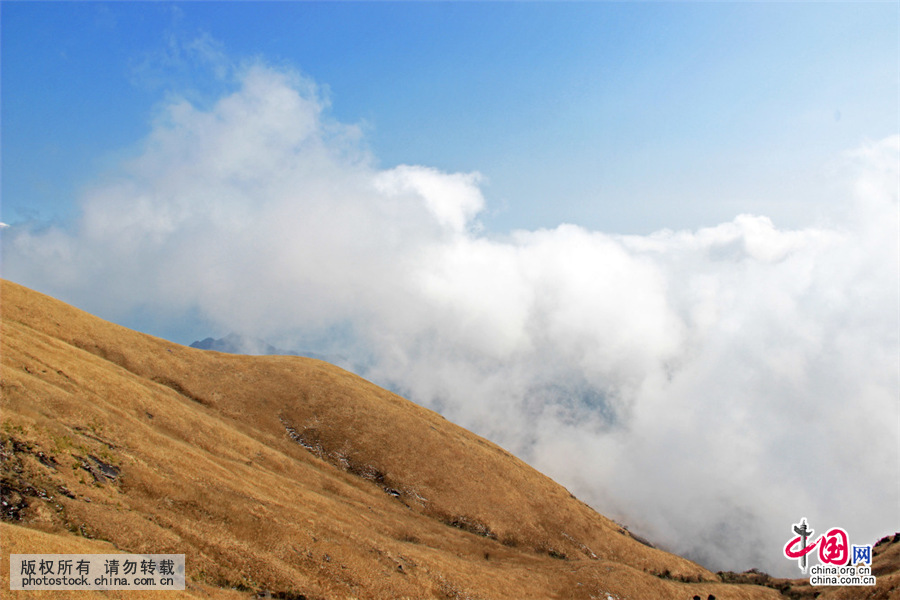 2016年1月17日,江西萍乡武功山景区光影交错,美如桌面壁纸,大面积的高山草甸,宛如壮美辽阔的西北草原。中国网图片库 陈涛/摄