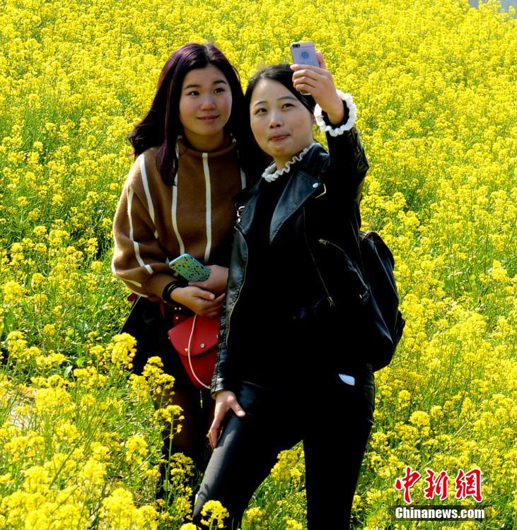 3月1日,福州春光明媚。福州花海公园内近百亩油菜花竞相绽放,成金色花海。引来大批市民及游客流连花海中,踏青赏花。 刘可耕 摄