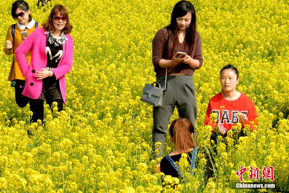 3月1日,福州春光明媚。福州花海公园内近百亩油菜花竞相绽放,成金色花海。引来大批市民及游客流连花海中,踏青赏花。 刘可耕 摄