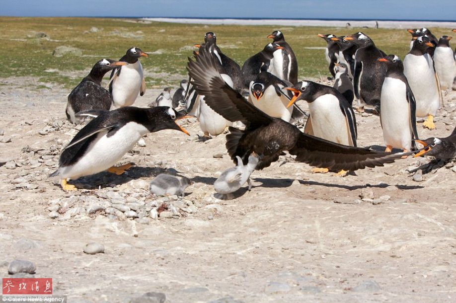 企鹅,贼鸥,捕食,每日邮报,马尔维纳斯群岛