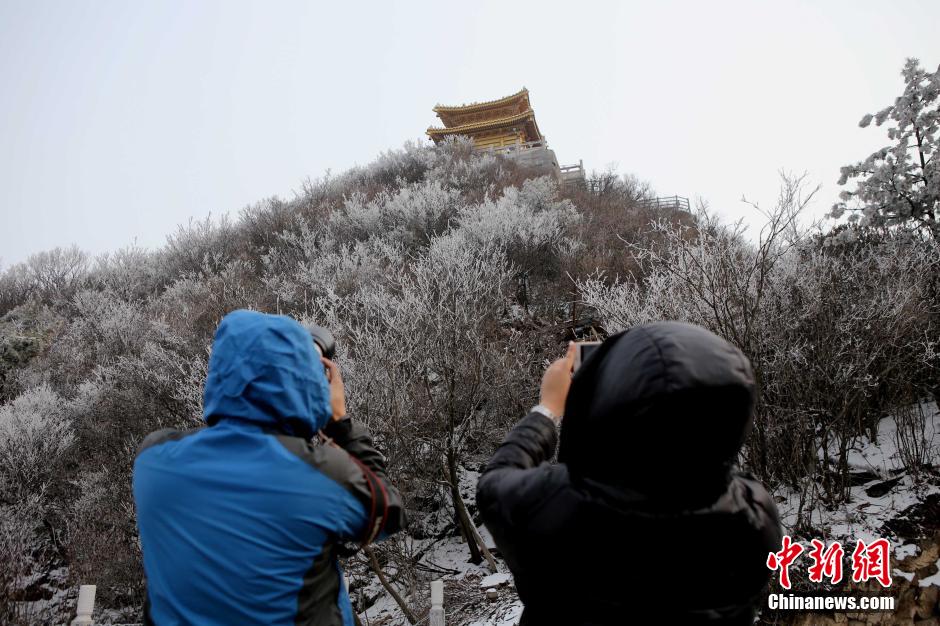 3月23日,河南洛阳老君山遭遇“倒春寒”,海拔2000米的老君山三月飞起“桃花雪”,玉树琼枝、银装素裹,金顶庙宇和苍松翠柏相衬,犹如一幅精致的水墨画。中新社记者 王中举 摄