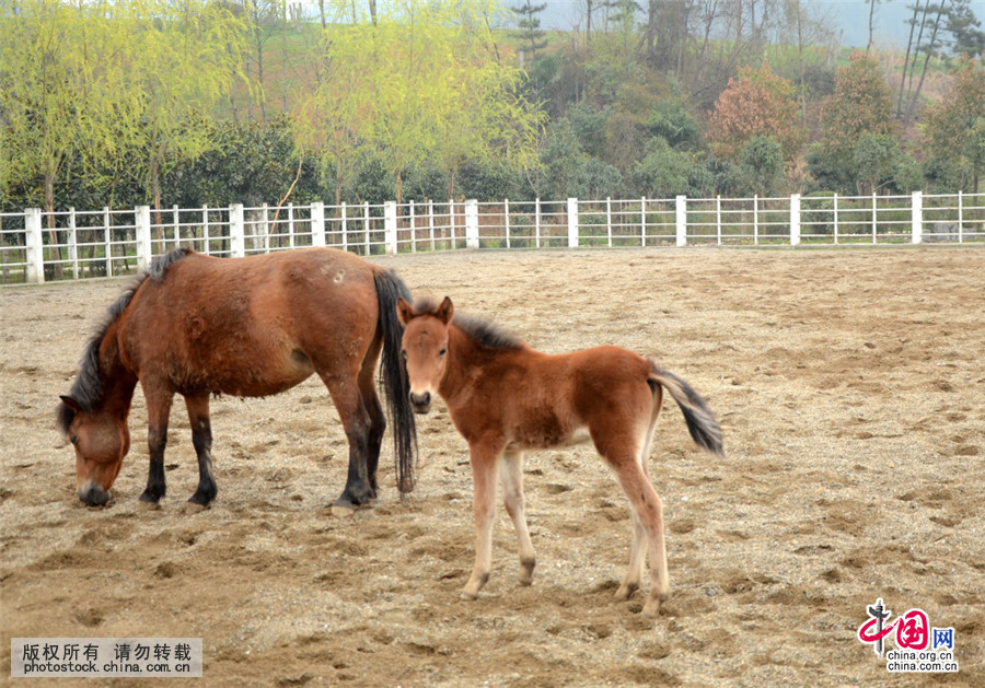 3月24日,小马驹和它的妈妈站在一起。中国网图片库 作者:吴天文
