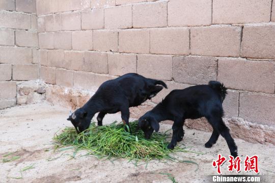 图为“羊坚强”与一头正常的小羊在一起吃草。 普文艳 摄