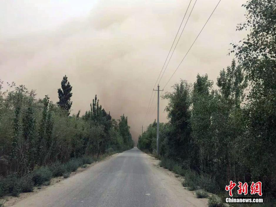 5月17日,新疆南部且末县出现强沙尘暴天气,这是今年5月份该地区遭遇的第二场强沙尘暴天气。沙尘暴来袭,整个县城变得浑浊,白天瞬间变成黑夜,能见度不足20米,公路上来往车辆都打开车灯慢行,大街商铺开灯营业。5月16日晚,新疆喀什地区英吉沙县、巴楚、伽师等县出现大风扬沙天气过程,对当地民众出行、农林等造成了一定的影响。截至记者发稿,新疆南部巴州且末县、和田地区仍处于浮尘天气。张娟 摄