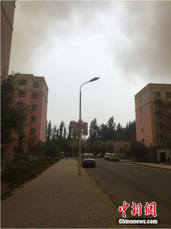 5月17日,新疆南部且末县出现强沙尘暴天气,这是今年5月份该地区遭遇的第二场强沙尘暴天气。沙尘暴来袭,整个县城变得浑浊,白天瞬间变成黑夜,能见度不足20米,公路上来往车辆都打开车灯慢行,大街商铺开灯营业。5月16日晚,新疆喀什地区英吉沙县、巴楚、伽师等县出现大风扬沙天气过程,对当地民众出行、农林等造成了一定的影响。截至记者发稿,新疆南部巴州且末县、和田地区仍处于浮尘天气。 苏娟 摄