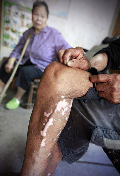当了多年的渔民模特,整天也水打交道。黄全德说,他的脚已脱了三层皮。
