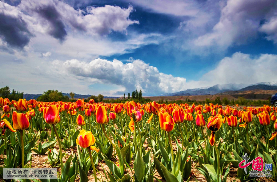 今年试种的郁金香长势旺盛。中国网图片库 马新民 摄