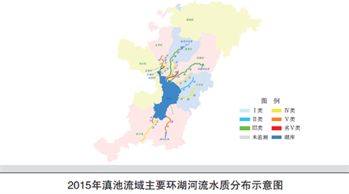 环湖河流16个国控断面中,无Ⅰ类水质断面,Ⅱ类占6.2%,均与2014年持平;Ⅲ类占12.5%,比2014年上升6.3个百分点;Ⅳ类占56.2%,比2014年上升37.4个百分点;Ⅴ类占12.5%,比2014年下降37.5个百分点;劣Ⅴ类占12.5%,比2014年下降6.3个百分点。