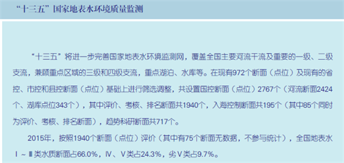 【水资源管理】 2015年,建立了由政府主要负责人负总责的省、市、县三级最严格水资源管理制度“行政首长负责制”,将国务院确定的“三条红线”控制指标逐级分解到省、市、县三级行政区,已实现省、市两级行政区全覆盖,县级行政区覆盖90%以上。全面推进中央、流域、省三级信息平台和取用水户、水功能区、省界断面三大监控体系建设,初步实现信息共享、互联互通和业务协同,国家水资源监控能力建设项目取得突破。强化水功能区水质监测,基本实现省界水质断面监测全覆盖,定期通报各流域省界监测结果。