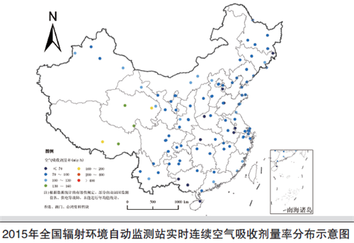 运行核电基地周围环境电离辐射 2015年,运行核电基地周围辐射环境自动监测站实时连续空气吸收剂量率处于当地天然本底涨落范围内。核电基地周围空气、水、土壤、生物中除氚外其他放射性核素活度浓度未见异常。秦山核电基地、大亚湾核电基地、阳江核电基地和田湾核电基地周围部分环境介质中氚活度浓度与核电厂运行前本底相比有所升高,评估结果表明,其对公众造成的辐射剂量远低于国家规定的剂量约束值。