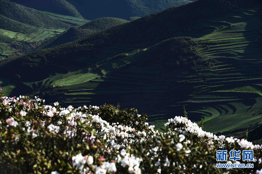 云南昭通市昭阳区大坪子山丘中的杜鹃花(6月4日摄)。初夏时节,在地处乌蒙山深处的云南省昭通市昭阳区靖安镇海拔近3000米的大坪子村,上万亩高山杜鹃花竞相绽放,美景如画。新华社记者杨宗友 摄