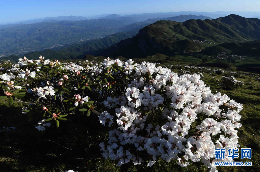 云南昭通市昭阳区大坪子山峰上盛开的杜鹃花(6月4日摄)。初夏时节,在地处乌蒙山深处的云南省昭通市昭阳区靖安镇海拔近3000米的大坪子村,上万亩高山杜鹃花竞相绽放,美景如画。新华社记者杨宗友 摄