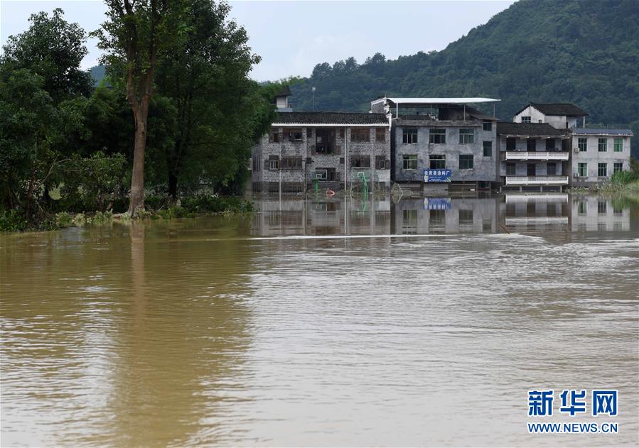 龙山县里耶镇的一处民居被洪水淹了一半(6月21日摄)。