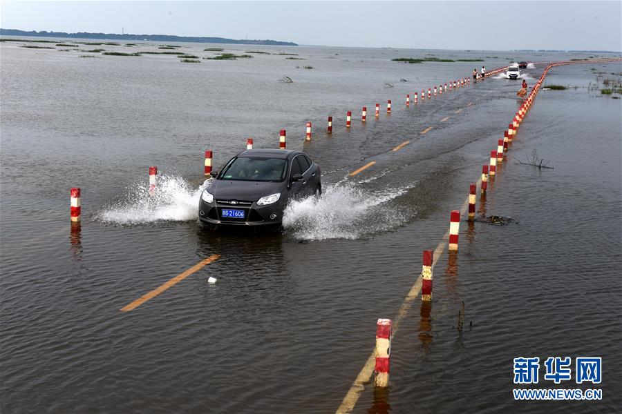 受强降水过程影响,鄱阳湖国家级自然保护区核心湖大湖池公路被洪水漫过。