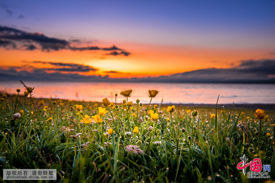 春季时湖边芳草依依,点缀着圣洁的高山大湖。 祁军摄
