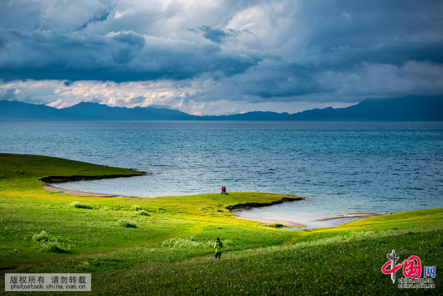 赛里木湖,是一个山间大湖,湖中有一个小岛,要不是能看见远处雪山延绵,真会以为它是茫茫大海。黄昏的湖水呈灰褐色。虽然太阳已经下山,但天边还泛着金黄,在落日余辉的映衬下,山色很美,剪影分外美丽。到天色渐黑的时候,山顶处一条紫红色的镶边将山脉和天空分开,给人一种莫名凄美的感觉。