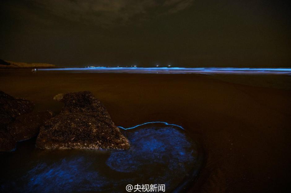 近日,福建长乐象鼻澳海滩连续4晚出现“蓝海”,泛着蓝光的海浪翻腾着涌向岸边,海岸线犹如璀璨的银河星空,美不胜收。专家介绍,泛蓝光的是夜光藻,是赤潮主要发生藻。但出现夜光藻并非意味着赤潮,当夜光藻密度超一定标准时才是发生赤潮。央视记者 黄珊 图片来源:央视新闻微博