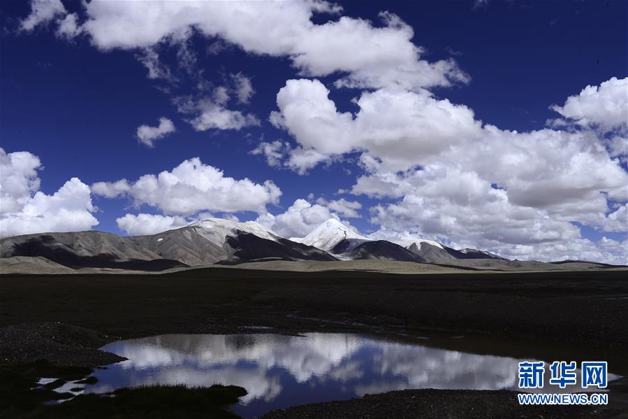 8月21日,玉珠峰与蓝天倒映于湖水中。初秋时节的昆仑山白雪皑皑,矗立在云间的玉珠峰高大雄伟,银装素裹。玉珠峰又称可可赛极门峰,海拔6178米,是昆仑山东段的最高峰。新华社记者张宏祥摄