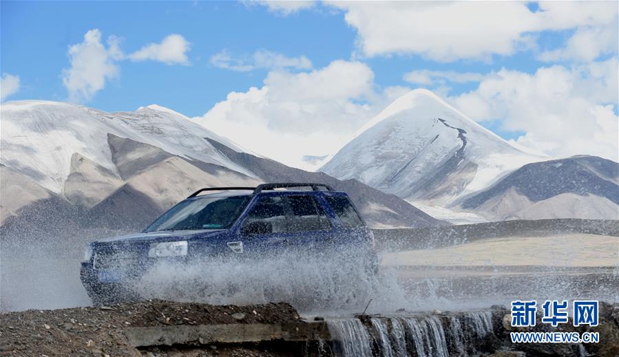 8月21日,一辆汽车在昆仑山玉珠峰下驶过。初秋时节的昆仑山白雪皑皑,矗立在云间的玉珠峰高大雄伟,银装素裹。玉珠峰又称可可赛极门峰,海拔6178米,是昆仑山东段的最高峰。新华社记者李晓果摄