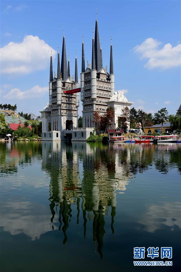 9月19日,位于河北石家庄新乐市河北美院动漫产业园内的“魔法城堡”在蓝天的映照下格外美丽。这座外形酷似《哈利波特》中霍格沃茨魔法学校的城堡位于河北美术学院南校区,目前被用作教学场所及创业基地。新华社发(贾敏杰 摄)
