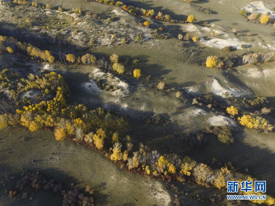 这是9月27日航拍的内蒙古赤峰市克什克腾旗乌兰布统草原秋色。秋意渐浓,广阔的草原在阳光的照耀下一片金黄。 新华社发(刘满仓摄)