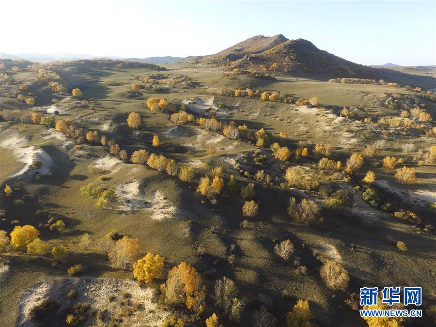 这是9月27日航拍的内蒙古赤峰市克什克腾旗乌兰布统草原秋色。秋意渐浓,广阔的草原在阳光的照耀下一片金黄。 新华社发(刘满仓摄)