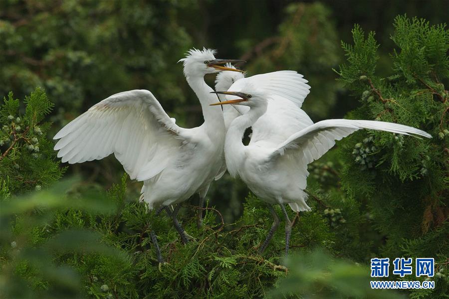 寒露时节,生活在江苏盱眙淮河河畔的白鹭沐浴秋色,或在树梢嬉戏,或翩翩起舞,给沿淮居民增添不少乐趣。