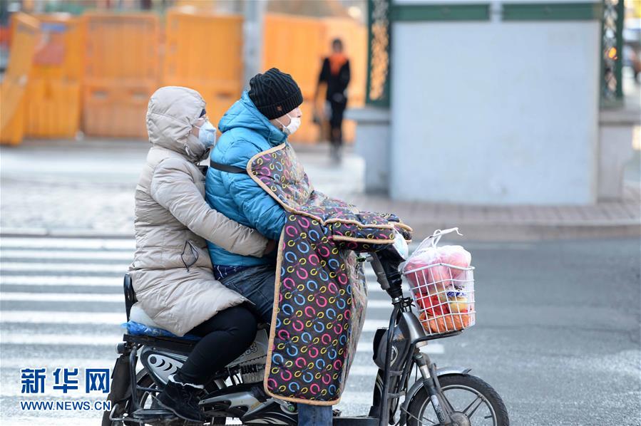 哈尔滨市街头的骑行者“全副武装”(10月26日摄)。新华社记者 王凯 摄
